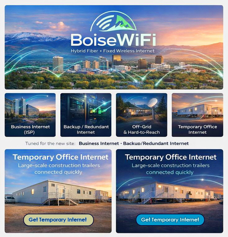 BoiseWiFi designs and delivers business internet engineered for real uptime and real operations — including hybrid fiber + fixed wireless options where they make sense.