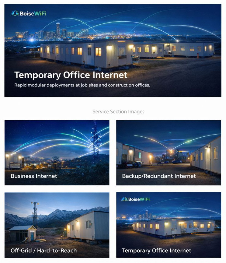 BoiseWiFi helps businesses and hard-to-reach customers get reliable connectivity with hybrid fiber optic + fixed wireless solutions—plus backup / redundant internet and temporary office internet for fast-moving projects.